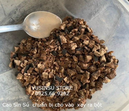 - Thành phần: Bột sìn sú nguyên chất với 95% thiềm tô cùng 5% thảo dược quý hiếm khác.